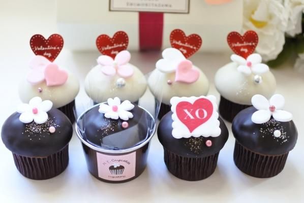 テイストは2種をご用意。ブラックとホワイトチョコレートがけのカップケーキを各4個ずつ、計8個入りのバレンタイン限定のギフトボックスです。