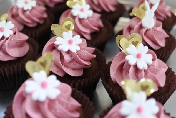 バレンタイン限定デザインのクリームカップケーキ4種、計24個入りのパーティーサイズのカップケーキセットです。