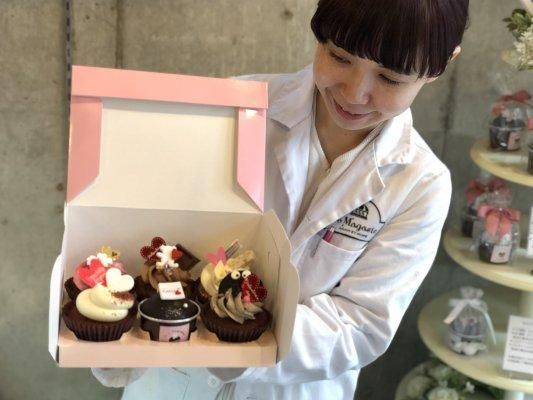 フランス産チョコレートやフルーツなど厳選した素材のおいしさをご賞味いただくため、甘さ控えめ。クリームに着色料は不使用&マーガリンやショートニングも使っていない素材にこだわってつくった、グルメカップケーキです。
