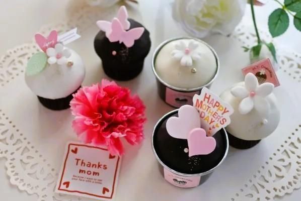 北海道産ミルクやバターやフランス産チョコレートなど、厳選した素材でしっとり焼き上げたカップケーキです。ケーキはエレガントなお花や蝶の砂糖菓子をデコレーションいたしました。